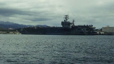 USS Carl Vinson at Pearl Harbor, Hawaii, November 3, 1996. Phtograph taken from the USS Arizona Memorial.